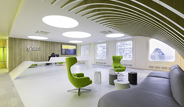 這些是軟件開(kāi)發(fā)公司SAS在法國(guó)展示的辦公室裝修設(shè)計(jì)的實(shí)景圖片,主要是通…